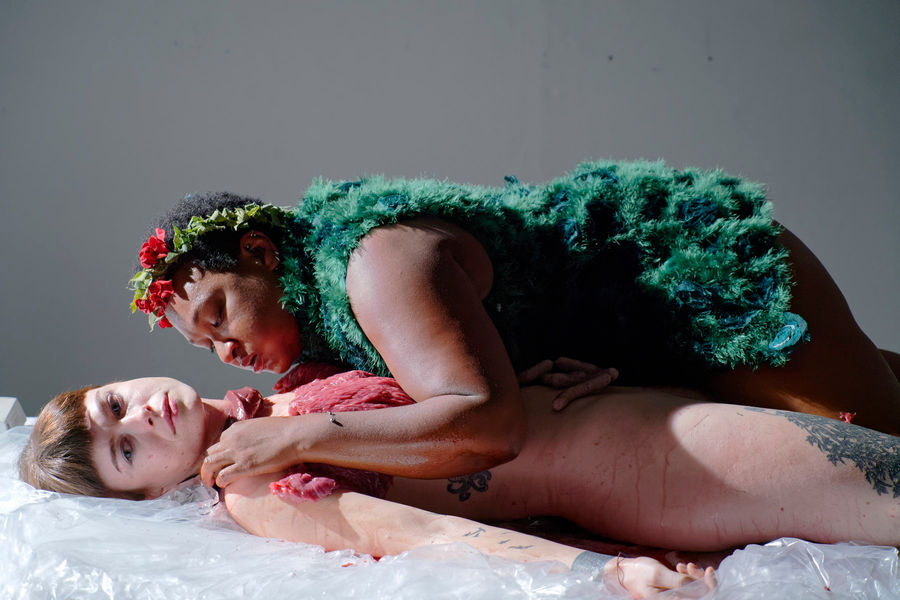 Cannibal is a violent love and food performance for two female lovers with a sound story about the German cannibal Armin Meiwess who fed himself with his lover in 2001.